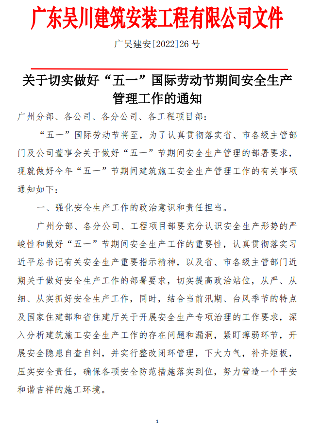 關(guān)于切實做好“五一”國際勞動節(jié)期間安全生產(chǎn)管理工作的通知