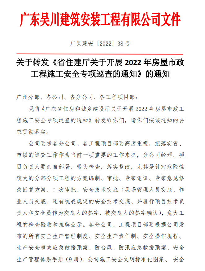 為認(rèn)真落實(shí)《住房和城鄉(xiāng)建設(shè)部關(guān)于開展房屋市政工程安全生產(chǎn)治理行動的通知》(建質(zhì)電〔2022〕19號)、《廣東省安全生產(chǎn)委員會關(guān)于印發(fā)<廣東省安全生產(chǎn)大檢查工作實(shí)施方案>的通知》(粵安〔2022〕6號)工作部署,進(jìn)一步壓實(shí)建設(shè)各方安全生產(chǎn)主體責(zé)任,治理施工安全突出問題,切實(shí)提升全省施工安全管理水平,按照我廳今年重點(diǎn)工作任務(wù)安排,結(jié)合我省城市建設(shè)安全專項(xiàng)整治三年行動有關(guān)工作實(shí)際,我廳通過政府購買服務(wù)的方式,委托第三方專業(yè)機(jī)構(gòu),開展全省房屋市政工程施工安全專項(xiàng)巡查?,F(xiàn)將有關(guān)事項(xiàng)通知如下: