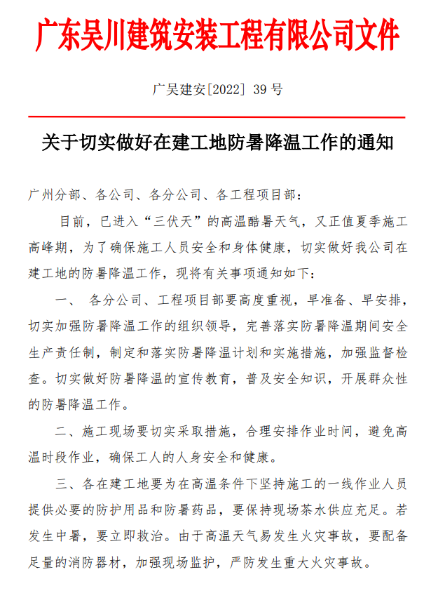 關(guān)于切實(shí)做好在建工地防暑降溫工作的通知