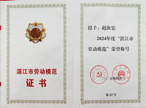 4月27日,湛江市委、市政府召開2025年湛江市慶祝“五一”國際勞動(dòng)節(jié)大會(huì),為進(jìn)一步弘揚(yáng)勞模精神、勞動(dòng)精神、工匠精神,為湛江跨越式、高質(zhì)量發(fā)展廣泛匯聚智慧和力量,根據(jù)《中共湛江市委湛江市人民政府關(guān)于表彰湛江市勞動(dòng)模范、先進(jìn)工作者和先進(jìn)集體的決定》,會(huì)上表彰湛江市勞動(dòng)模范、先進(jìn)工作者和先進(jìn)集體。其中,我司趙汝宏同志榮獲湛江市勞動(dòng)模范稱號。